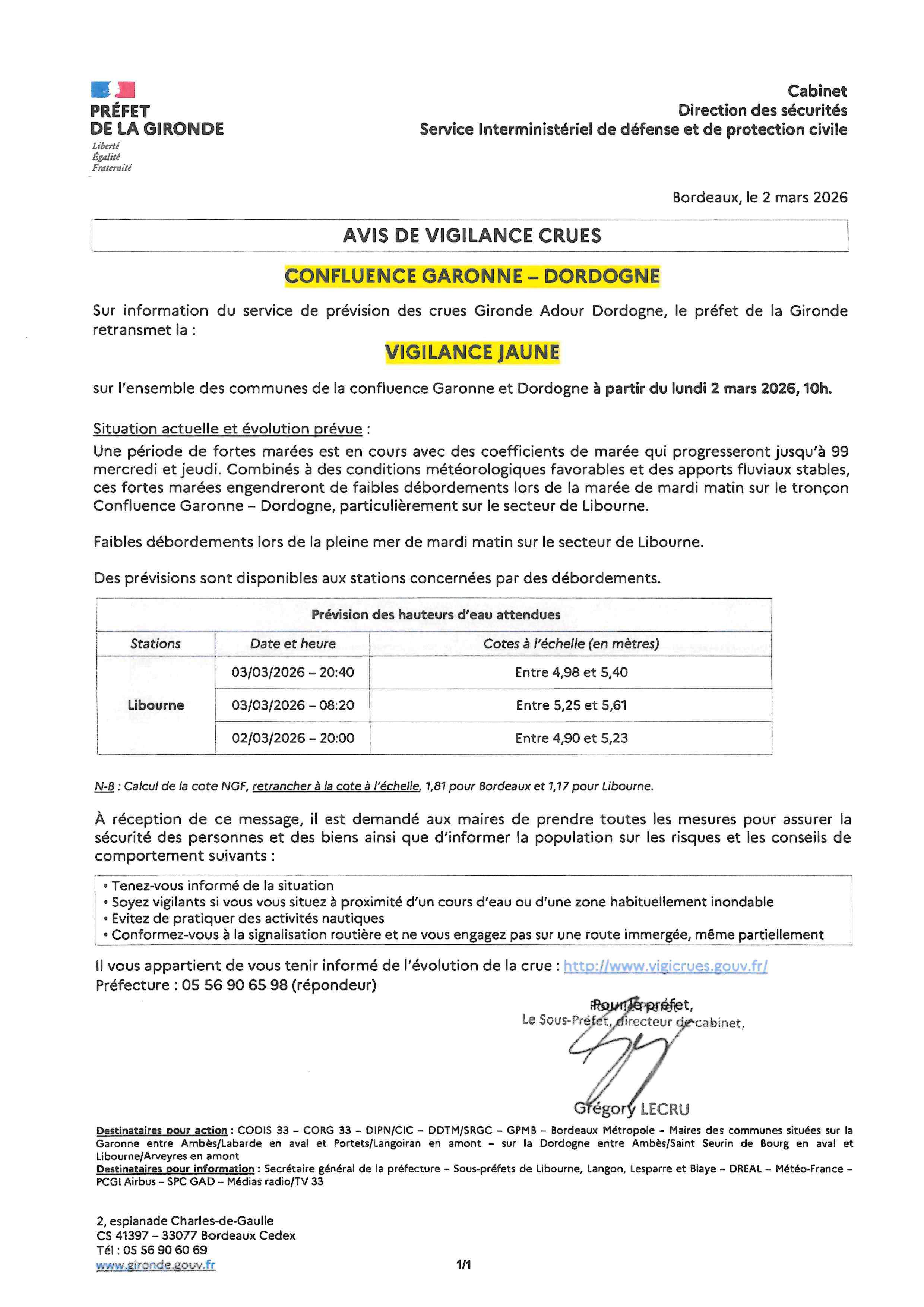 Messages de la Préfecture : vigilances météo