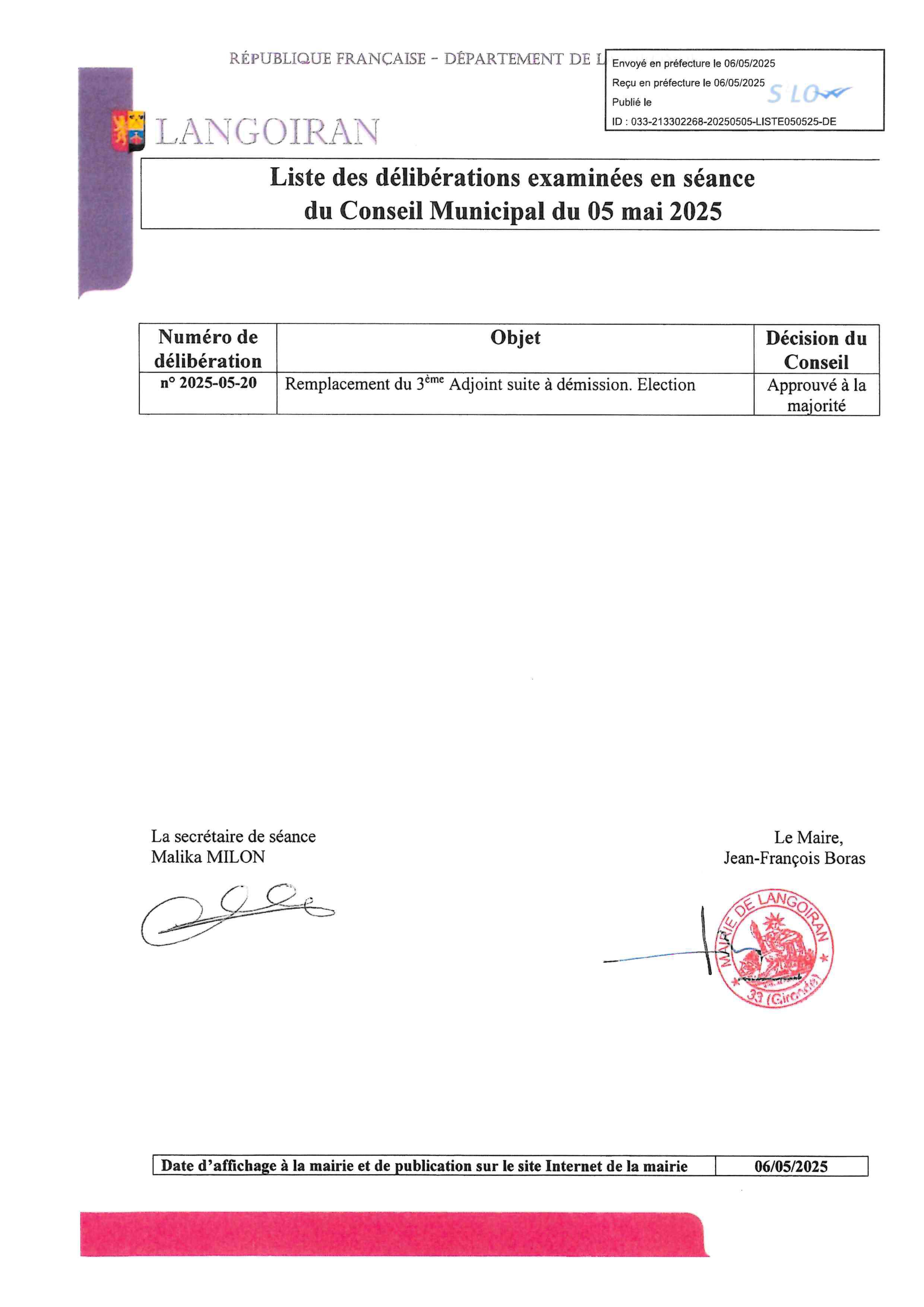 Conseil municipal du 05/05/2025